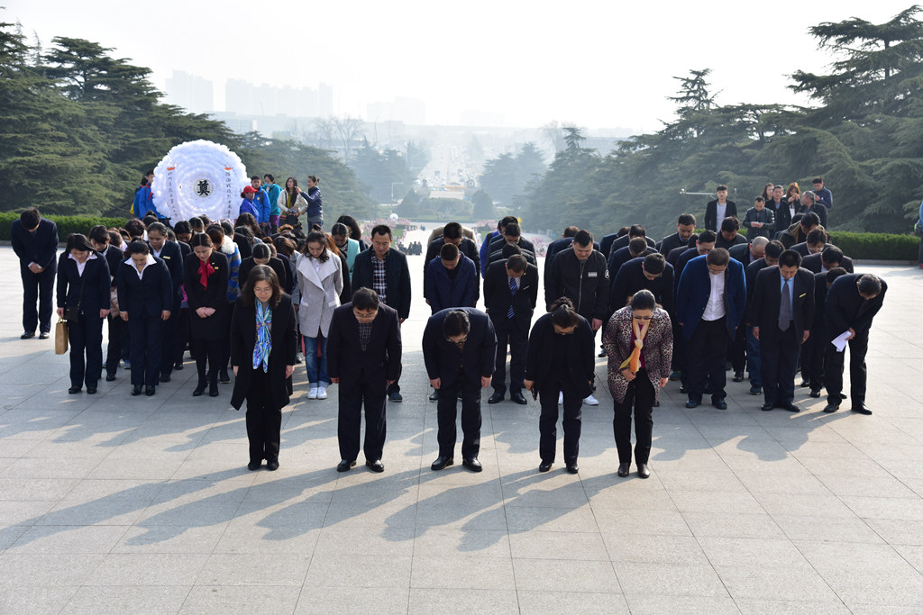 國(guó)盛公司總經(jīng)理李中亞帶領(lǐng)參加祭掃的同志,在淮海戰(zhàn)役烈士紀(jì)念塔前莊嚴(yán)肅立,唱《中華人民共和國(guó)國(guó)歌》。隨后,李中亞同志代表國(guó)盛公司敬獻(xiàn)花圈,全體人員向革命先烈三鞠躬。在莊嚴(yán)肅穆的氛圍中,全體黨員宣讀了入黨誓詞。最后,所有參加祭掃的同志,繞淮海烈士紀(jì)念塔一周,瞻仰憑吊革命烈士豐功偉績(jī)。