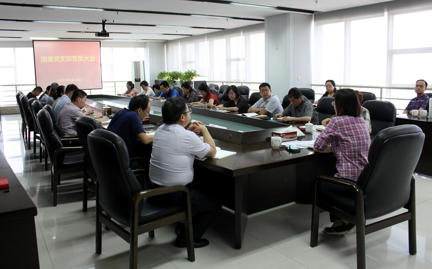 5月19日下午,國盛公司董事長趙麗主持召開國盛黨支部黨員大會,共30名黨員參會。