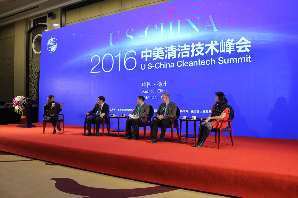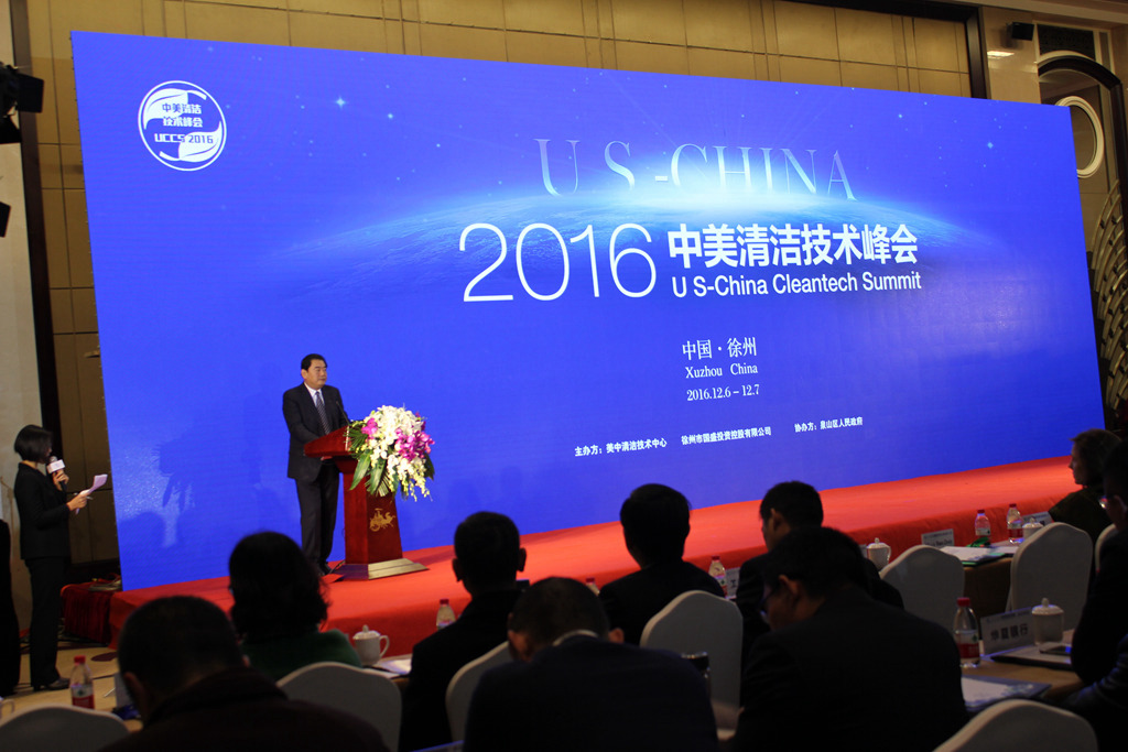 12月6日-7日,由市國(guó)盛公司和美中清潔技術(shù)中心聯(lián)合主辦的2016中美清潔技術(shù)峰會(huì)在徐州云泉山莊順利召開。市委副書記楊時(shí)云,市委常委、副市長(zhǎng)王安順、市財(cái)政局局長(zhǎng)李京城、市國(guó)盛公司董事長(zhǎng)趙麗,國(guó)務(wù)院參事、中國(guó)可再生能源學(xué)會(huì)理事長(zhǎng)石定寰,美國(guó)駐上??傤I(lǐng)事館環(huán)境科技領(lǐng)事芮力、美中清潔技術(shù)中心總裁安鋒等出席。另有國(guó)盛公司邀請(qǐng)的國(guó)內(nèi)外400多名企業(yè)負(fù)責(zé)人、專家學(xué)者參會(huì)。