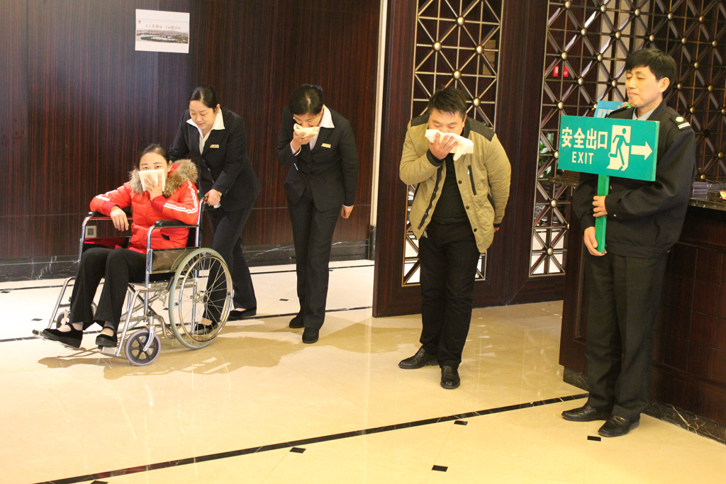 隨著火災(zāi)警報(bào)的響起,消防安全疏散演練拉開(kāi)帷幕。演練假設(shè)酒店三樓一客房發(fā)生火情,且火勢(shì)迅速蔓延。在負(fù)責(zé)人的指揮下,滅火組立即前去撲救初起火災(zāi),疏散組有序組織人員向預(yù)定安全區(qū)域轉(zhuǎn)移,通訊組實(shí)時(shí)通報(bào)各組情況并保持信息暢通,防護(hù)組及時(shí)對(duì)人員進(jìn)行救助和安撫,其他各小組均按照演練方案認(rèn)真履行各自職責(zé)。演習(xí)過(guò)程中,大家用濕毛巾捂住口鼻,低頭彎腰,迅速到達(dá)指定地點(diǎn),隨后火情成功撲滅。演習(xí)結(jié)束后,安保部經(jīng)理結(jié)合酒店工作特點(diǎn),有針對(duì)性地向員工講解了日常防火滅火知識(shí)、正確撥打火警電話的方法、快速撲救初起火災(zāi)的技巧、組織人員疏散及火場(chǎng)逃生自救注意事項(xiàng)等消防安全知識(shí)。