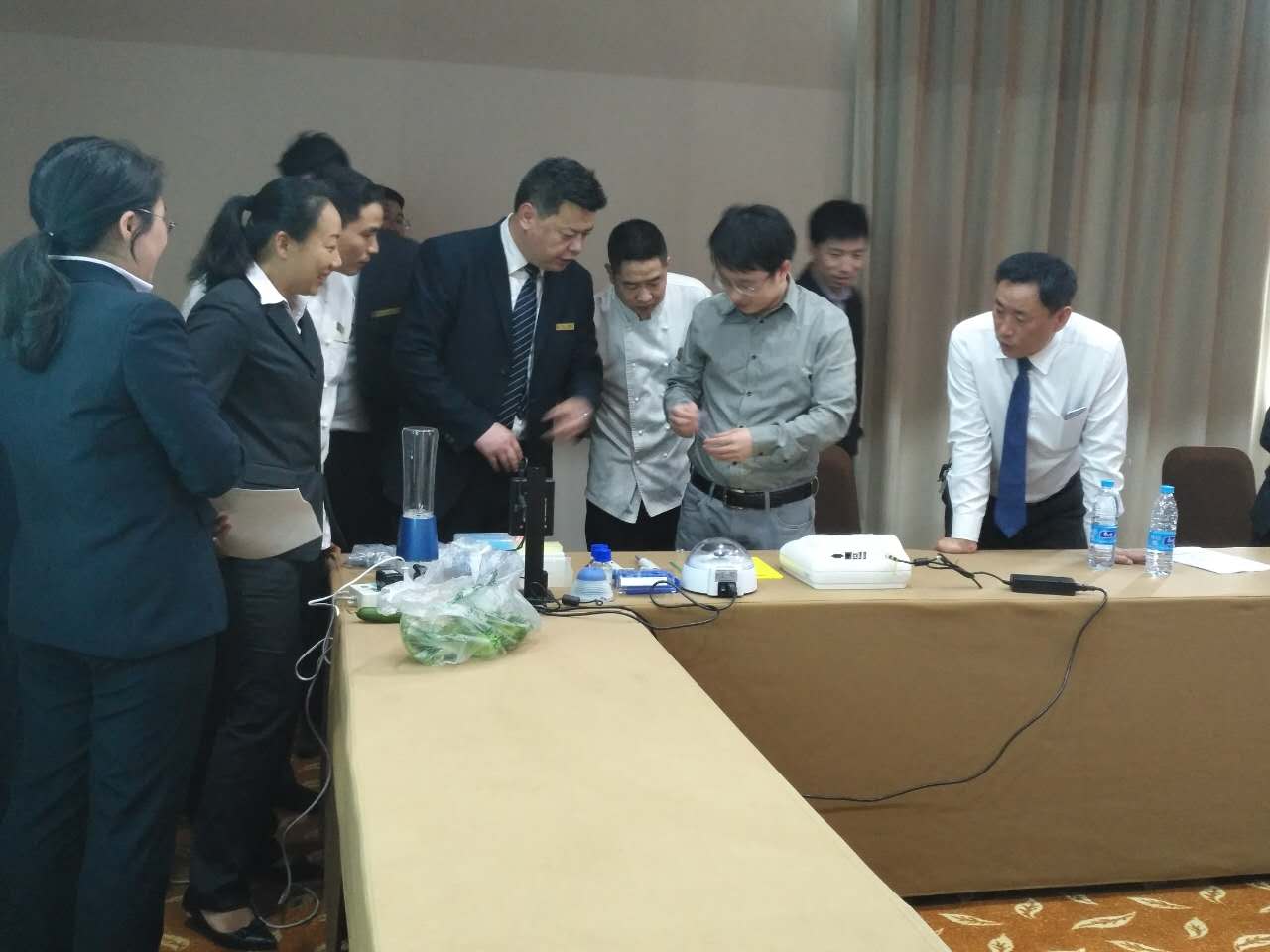 為進(jìn)一步加強(qiáng)酒店食品安全的自檢自控能力,4月19日下午,云泉山莊邀請國內(nèi)最大的安檢設(shè)備生產(chǎn)機(jī)構(gòu)清華同方威視的專家,講解了當(dāng)前食品安全形勢、食品安全檢測技術(shù)及質(zhì)量控制等熱點問題,并現(xiàn)場操作RT5000食品安全快速檢測儀對食材的檢測方法。